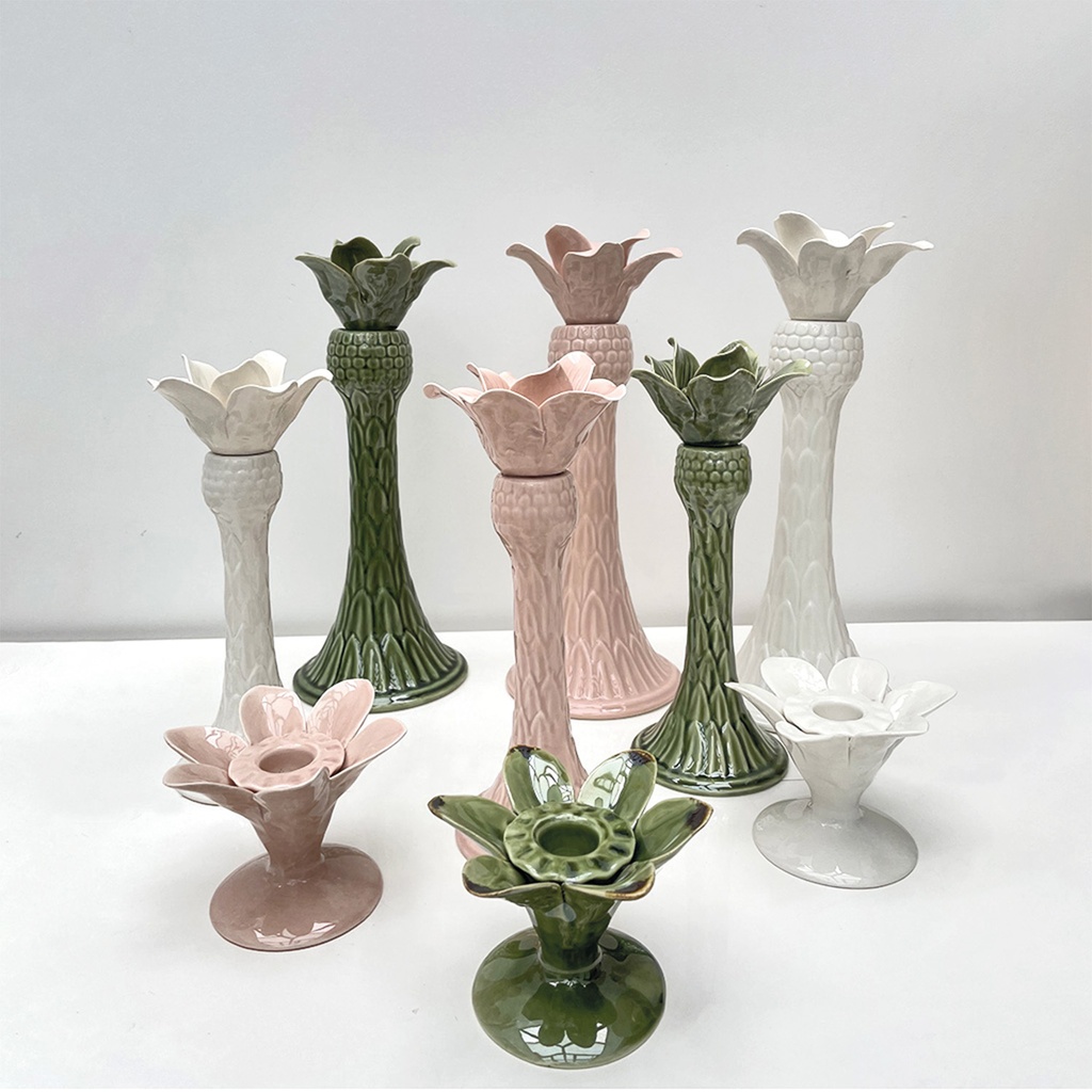 Este candelabro de cerámica rosa, de tamaño pequeno, es el complemento perfecto para cualquier decoración. Su vibrante color rosa añade un toque de elegancia a cualquier habitación. Exhiba sus velas con estilo con este elegante portavelas en forma de palmera.
