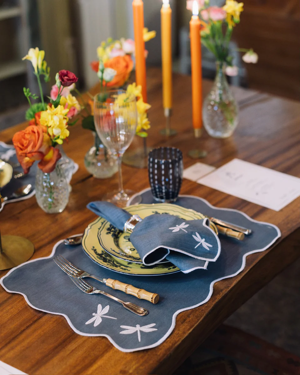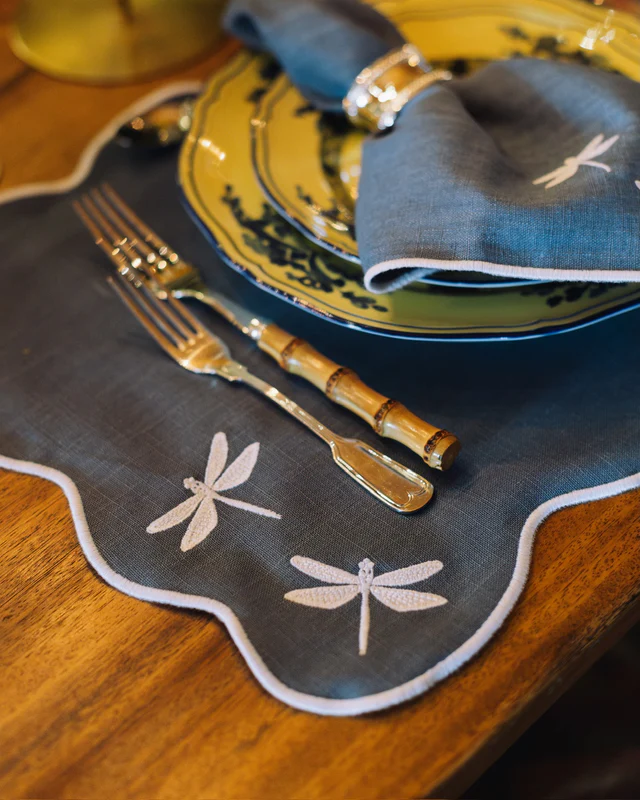 Con libélulas bordadas, estos productos aportan un toque delicado y poético a su mesa, uniendo funcionalidad, con acabado resistente y Antimanchas. Inspiración en un solo conjunto.