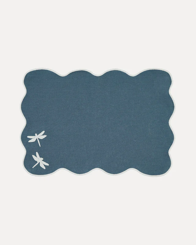 Mantel Individual Libélulas, Azul con Blanco, Antimanchas
