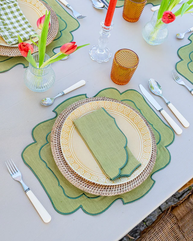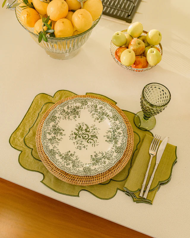 El Mantel Individual Belmonte en la versión verde es uno de nuestros best sellers, destacándose por sus colores vistosos y una forma única que cautiva cualquier ambiente. Perfecto para añadir un toque de elegancia y personalidad a su mesa.