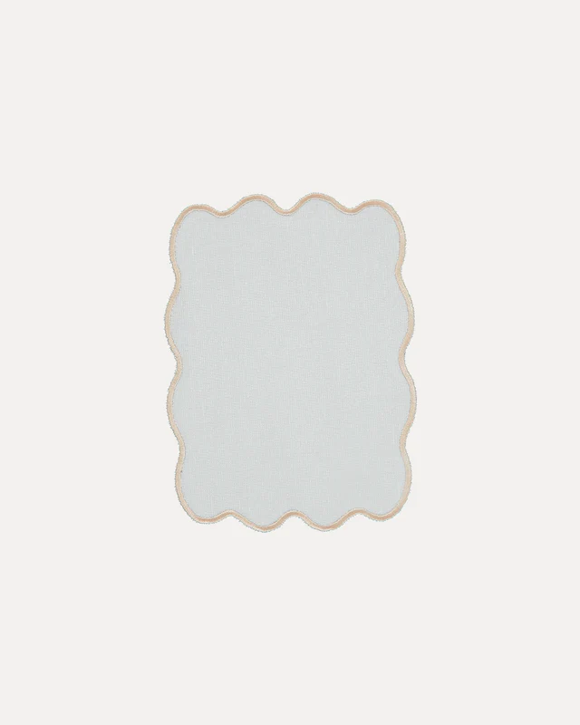 Servilleta confeccionada en lino y algodón con borde ondulado.