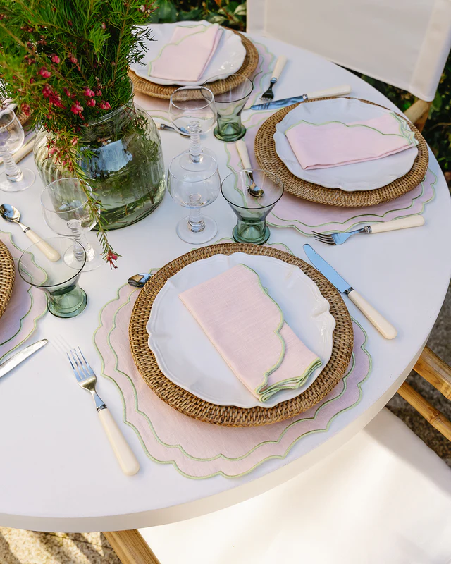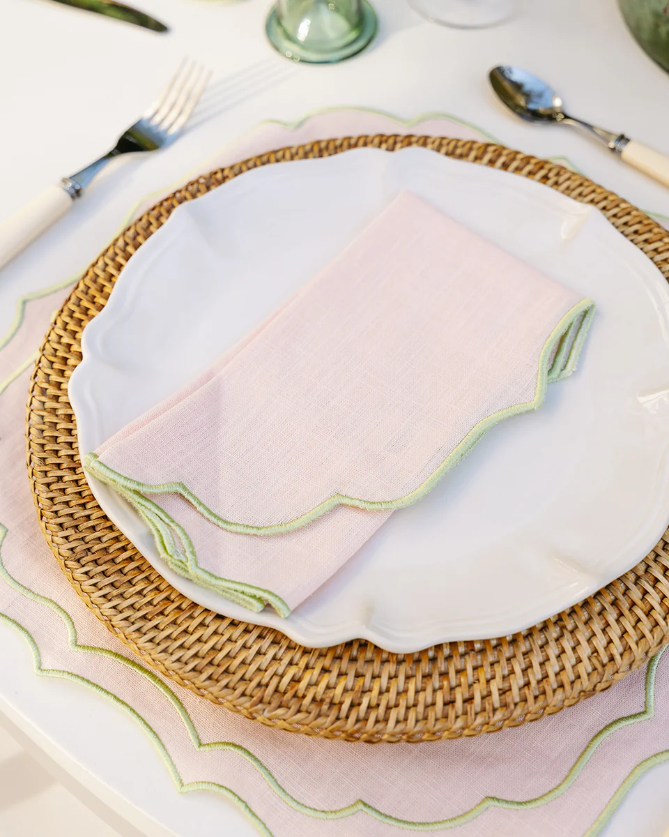 Esta bonita servilleta en rosa bebé con verde claro, es la elección perfecta para añadir color y elegancia a su mesa. Con 45×45 cm, es ideal para comidas formales o informales, ofreciendo un toque sofisticado con un diseño simple y encantador.
