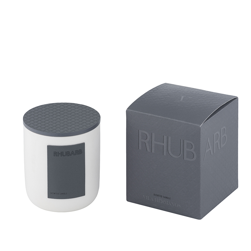 La Vela azul gris Rhubarb es una fragancia de flor de nipón, contrastando con plantas aromáticas como el tomillo y ruibarbo, aportando un toque chispeante a esta fragancia. Inspirados en un viaje por los perfumes de la tierra bajo el lema ‘Feeling part of the earth’. Vela vaso cerámica blanca 200gr en color blanco , con etiquetas y tapa de piel en colores pasteles.